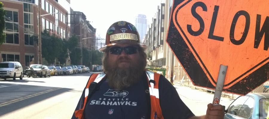 I finally had to stop and talk to this friendly hard-hatted guy, as I appreciated the gesture each morning as I pedaled past. He told me he has a philosophy that acknowledging other humans and passing on a little positive thought can really improve attitudes, and one’s perspective on the day. I think he is right! He has actually paid enough real attention over the summer that he recognizes us individually now, and probably appreciates the return nod or thumbs-up from us as well. He has been out there every day! He noted that even the grumpy cyclists that were first frustrated with having to ride through the construction zone, and didn’t particularly like seeing him (or the other side of the sign which says “Stop”), have come around with improved attitudes.