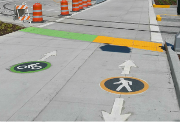- Installing a higher railing to the inside of the sidewalks. The railing should be designed to reduce conflicts with handlebars and prevent people from falling off their bikes into the roadway.