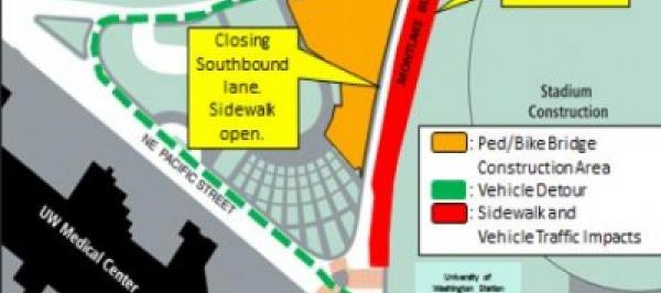 Construction of the University of Washington Station pedestrian/bike bridge construction continues...