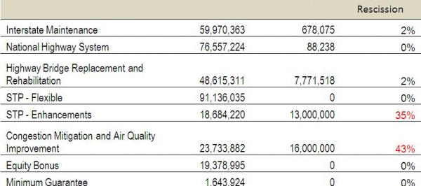 The federal government is a big funder of critical transportation infrastructure—including infrastructure and safety improvements for bikes. That’s why we’ve been active at the federal level on the next federal transportation bill. But what the Feds giveth they often take away. State Transportation Departments from across the land occasionally have to send back unspent funds—“rescinding” the funds—to help the USDOT clear the books. Here’s the rub. The Feds decide how much money each state returns, but the states decide where the money comes from. Some states give back proportionately so that, say, unspent highway funds come back at the same level as ped or bike safety funding. But many states don’t play this way—including Washington state ( supposedly the #1 state for bicycling ). Instead, a rather disproportionate amount of money comes from things like Transportation Enhancements (TE), Congestion Mitigation and Air Quality (CMAQ) and Recreational Trails funds—which happen to be the largest buckets for bike and ped projects. In 2010, over $900 million of $2.2 billion was returned from these sources. This is not a slow leak, but a nasty snake bite. Insta-flat.
