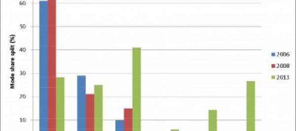 Although Herrera only recently started tracking bicycling and walking as separate commute modes,...