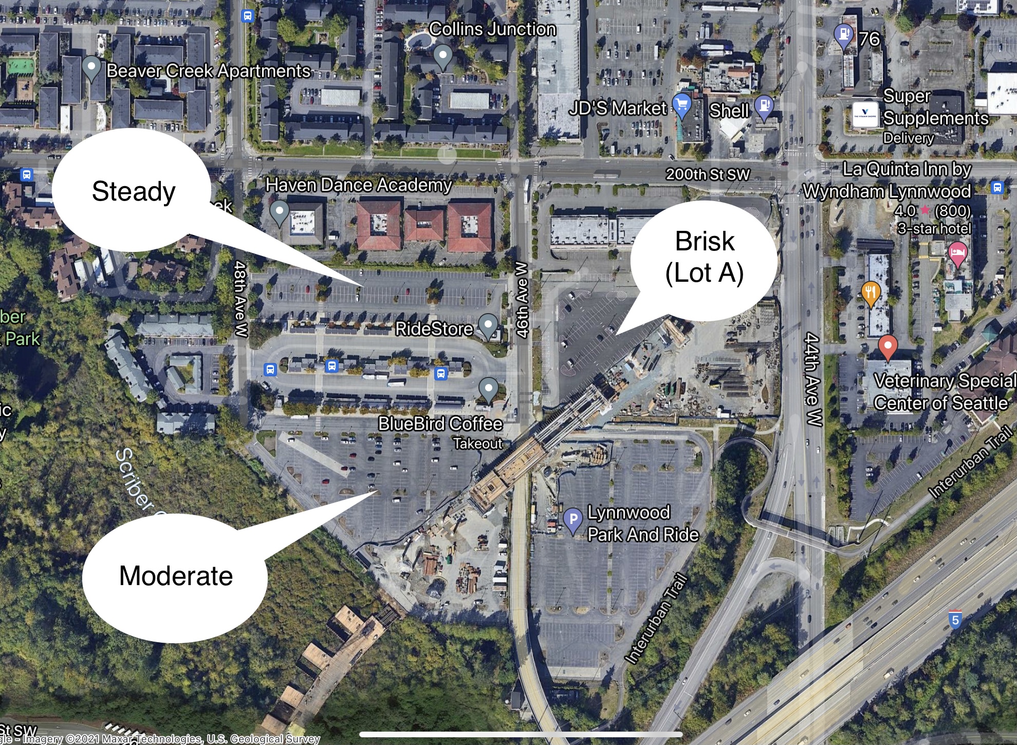 Please meet in Lot A (on the east side of 46th) at 5:45 pm for our pre-ride safety briefing so we can depart promptly at 6:00 pm. A picture of the transit center showing where to meet is linked below. There will be other Cascade NERD pace groups meeting in other areas of the transit center, so if unsure when you pull up, ask a ride leader and they will direct you to the right start.