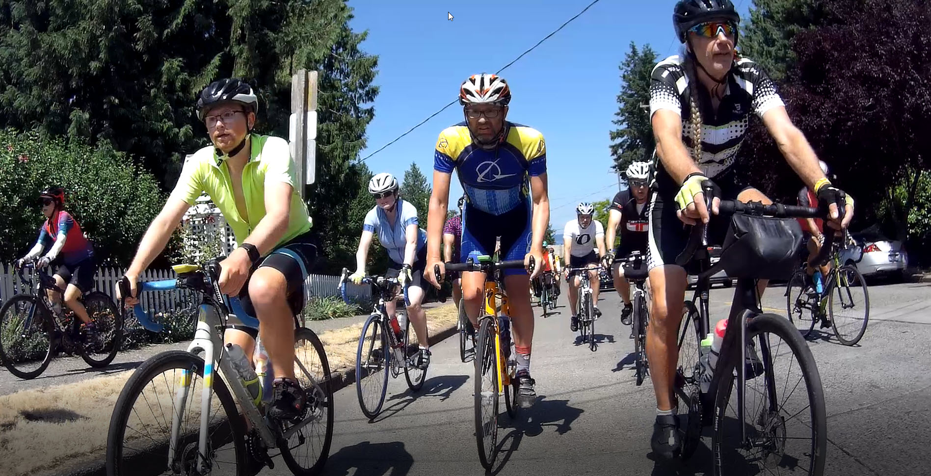 We will climb and descend hills at our own pace, and our goal will be to stay together. We'll also limit our speed on any multi-use paths to the legal maximum (usually 15 MPH).