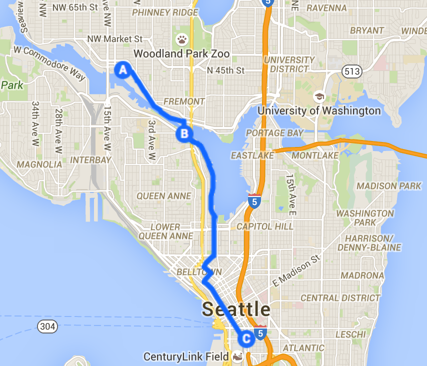 - B - 8:10 a.m., Fremont Bridge BTWD Station: Join the ride.