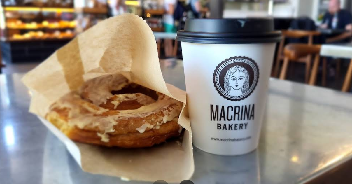 Pastry and coffee on a counter at Macrina Bakery on Queen Anne