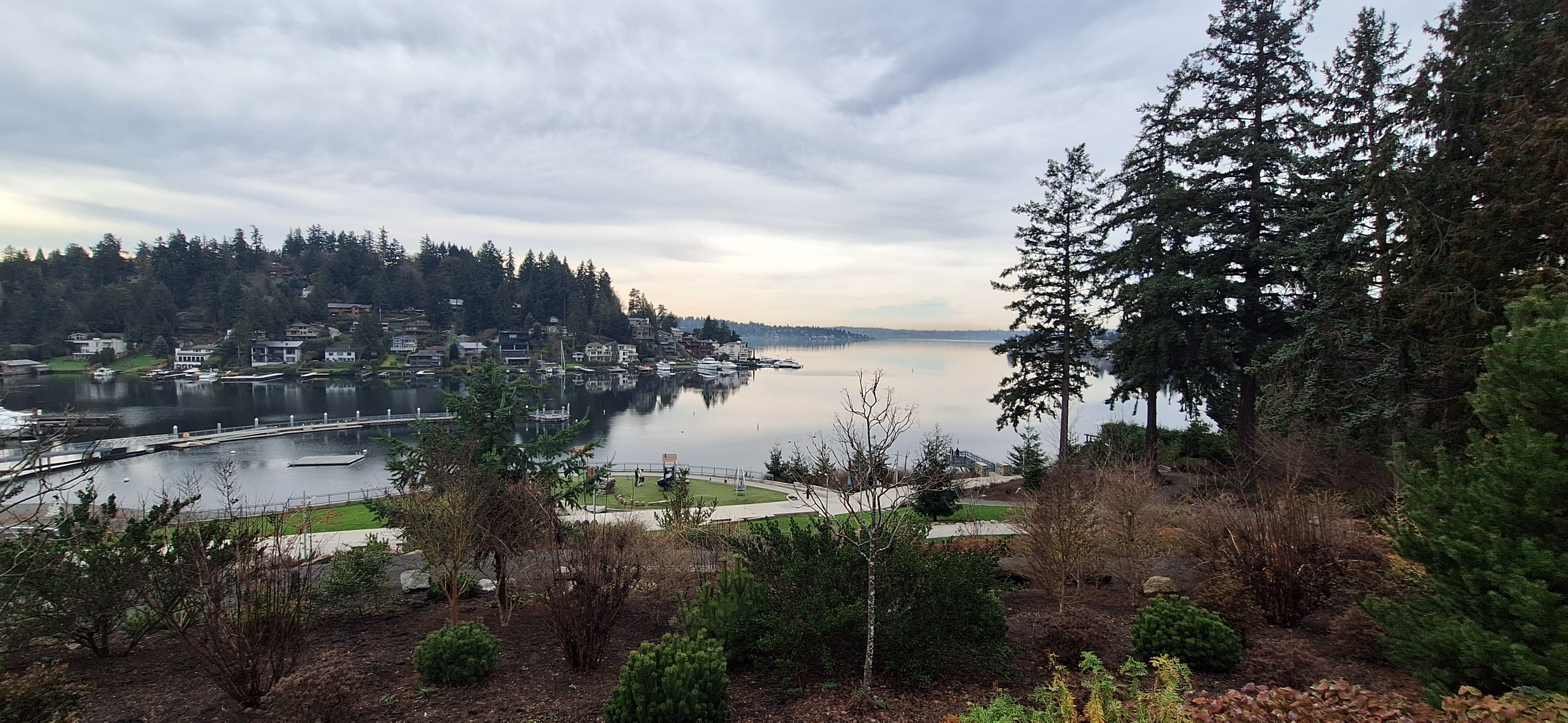 Two Bridges + Mercer Island from Bellevue Bellefield Park (Brisk)