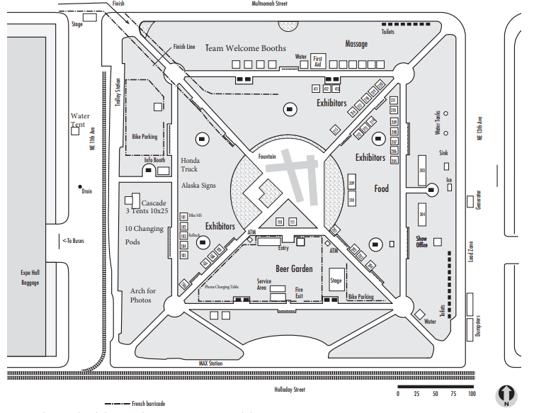 Stop by the finish line and get your finisher meal, enjoy the beer garden, take photos, pick up your finisher T-shirt, pickup your luggage, load onto buses (ticket required), and get your bike onto the bike truck back to Seattle (ticket required).